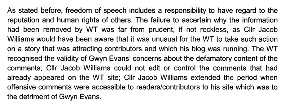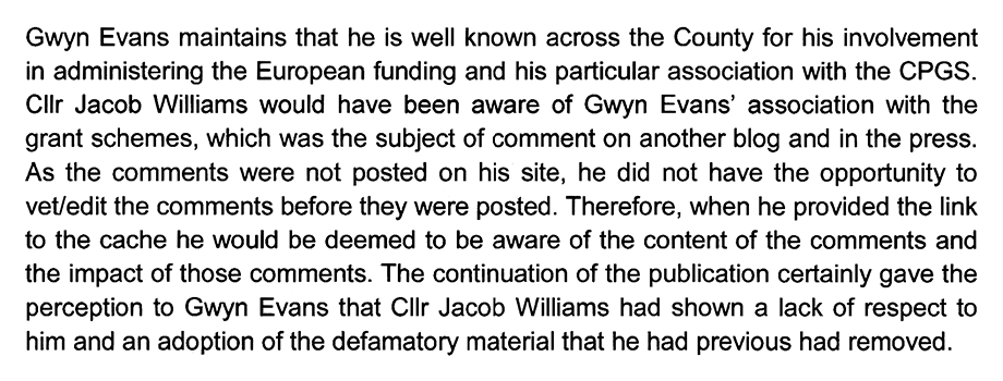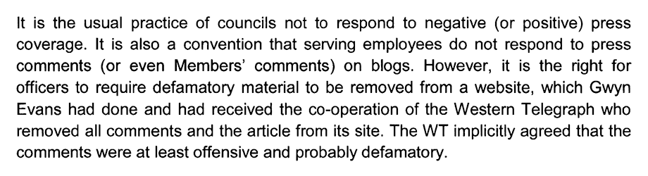 Next, Mr. Harding addresses Mr. Evans’ bid to get the Western Telegraph to expunge the ‘scandalous’ commentary: